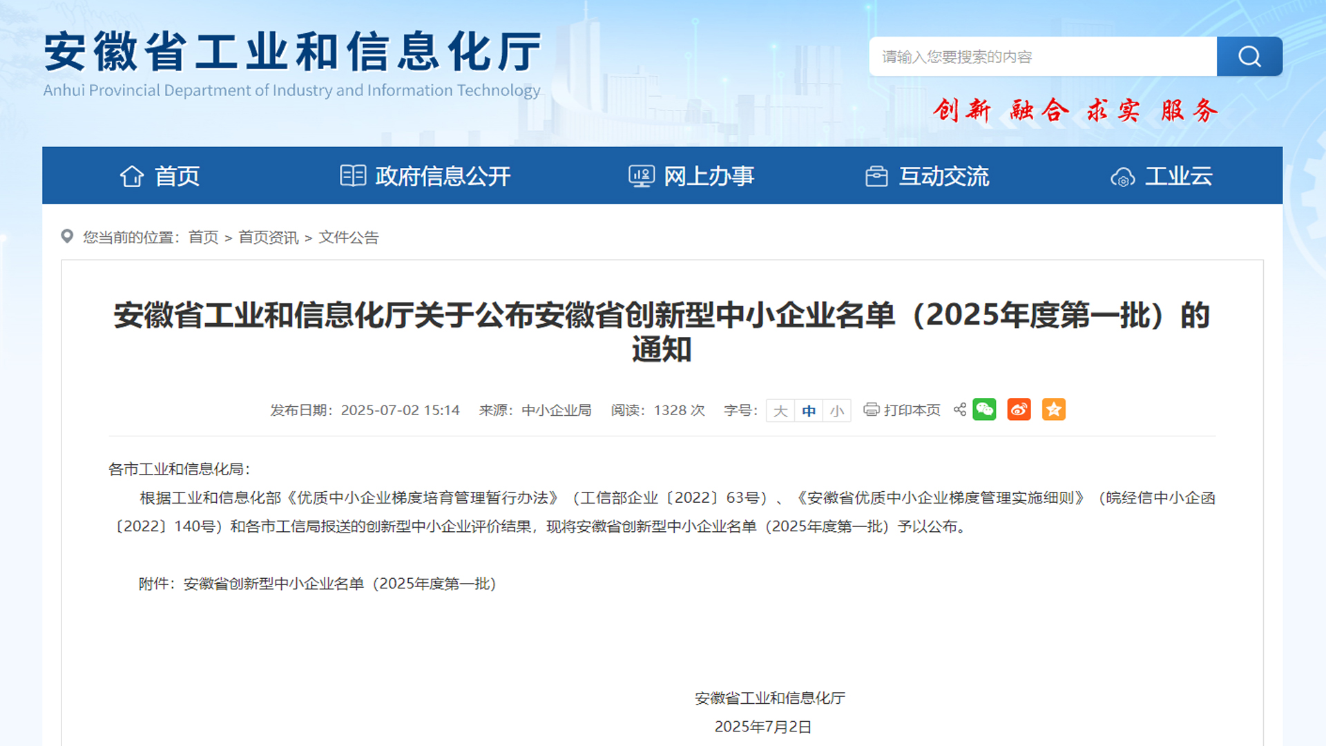近日,安徽省工業(yè)和信息化廳發(fā)布《關(guān)于公布安徽省創(chuàng)新型中小企業(yè)名單(20…